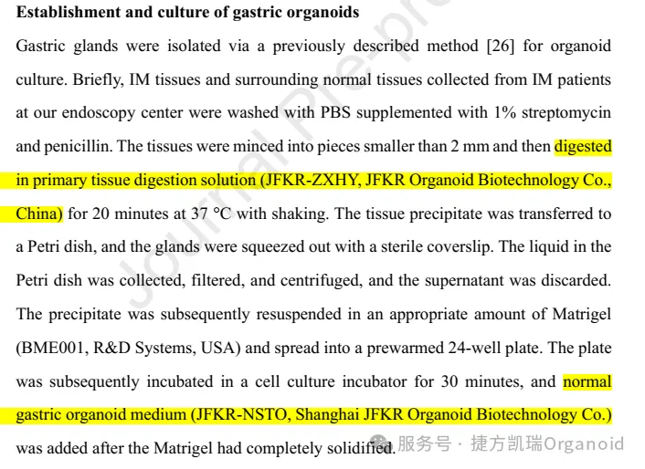·The tissues were minced into pieces smaller than 2 mm and then digested in primary tissue digestion solution (JFKR-ZXHY, JFKR Organoid Biotechnology Co., China) for 20 minutes at 37 °C with shaking.