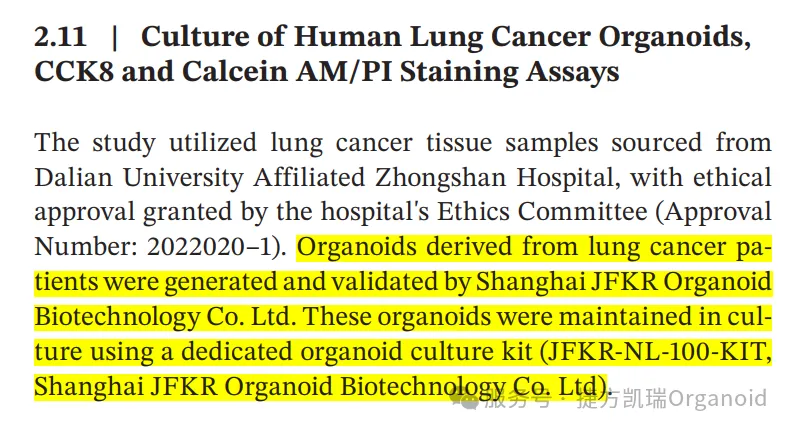 捷方凯瑞为本研究提供人肺癌器官株及肺癌类器官培养基,欢迎咨询!