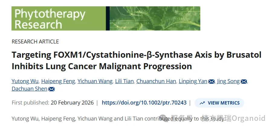 [1]Wu Y, Feng H, Wang Y, et al. Targeting FOXM1/Cystathionine-β-Synthase Axis by Brusatol Inhibits Lung Cancer Malignant Progression. Phytother Res. Published online February 20, 2026. doi:10.1002/ptr.70243